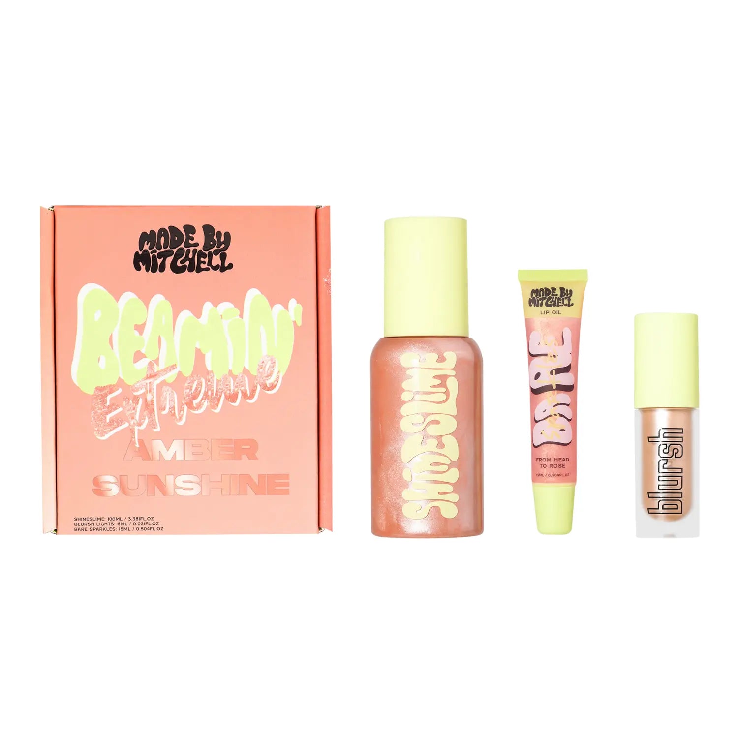 De Made By Mitchell Beamin Extreme Amber Sunshine Bundle is alles wat je nodig hebt om jezelf van top tot teen in glow te hullen. Deze dreamy trio zit bomvol glans, sparkles en shine en geloof ons: hiermee steel je gegarandeerd de show. Of je nu een subtiele sparkle wilt of full-on glitter goals nastreeft, deze set laat je stralen op jouw manier. De beauty bundle is verkrijgbaar in meerdere kleuren: zo kan je perfect kiezen wat bij jou past!
