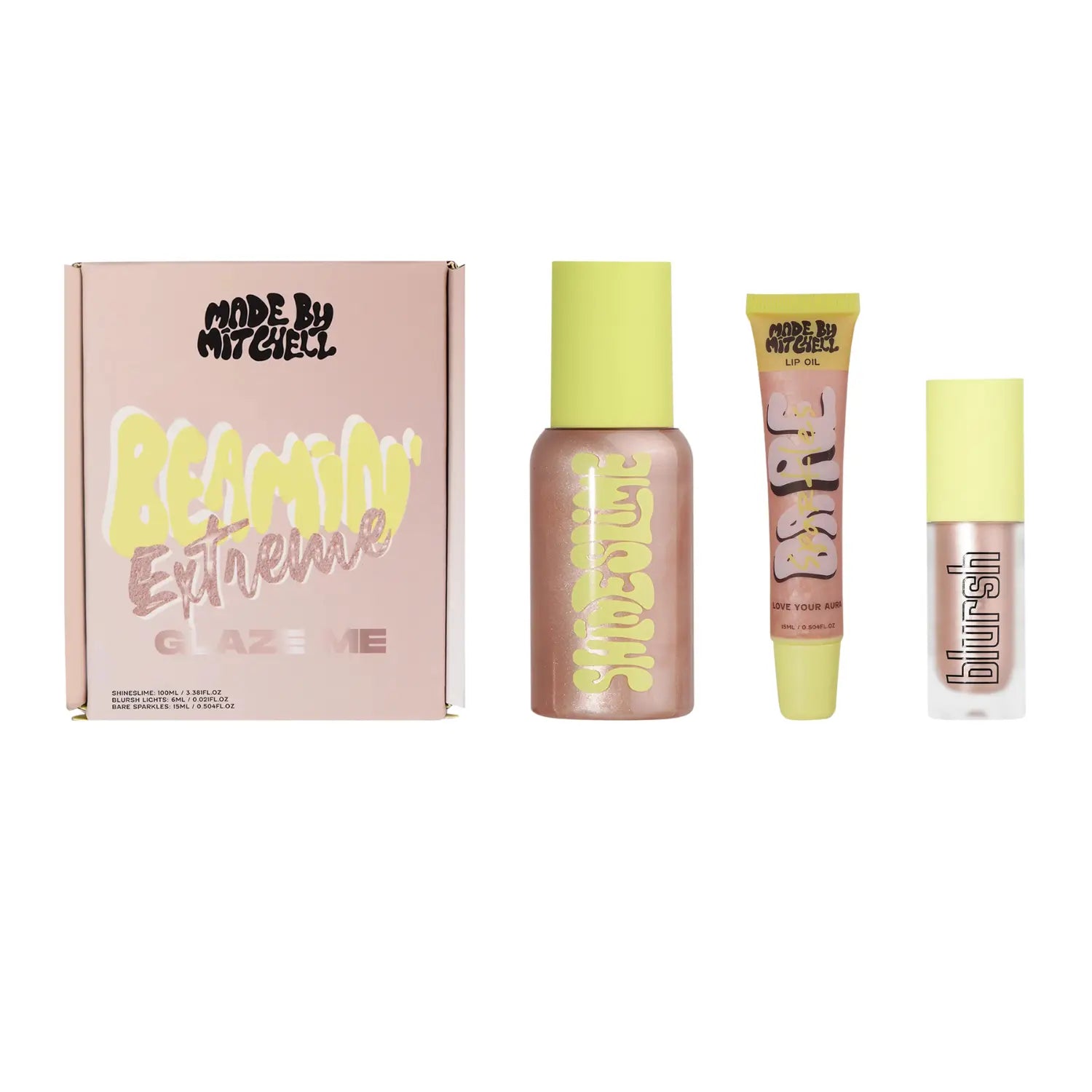 De Made By Mitchell Beamin Extreme Glaze Me Bundle is alles wat je nodig hebt om jezelf van top tot teen in glow te hullen. Deze dreamy trio zit bomvol glans, sparkles en shine en geloof ons: hiermee steel je gegarandeerd de show. Of je nu een subtiele sparkle wilt of full-on glitter goals nastreeft, deze set laat je stralen op jouw manier. De beauty bundle is verkrijgbaar in meerdere kleuren: zo kan je perfect kiezen wat bij jou past!
