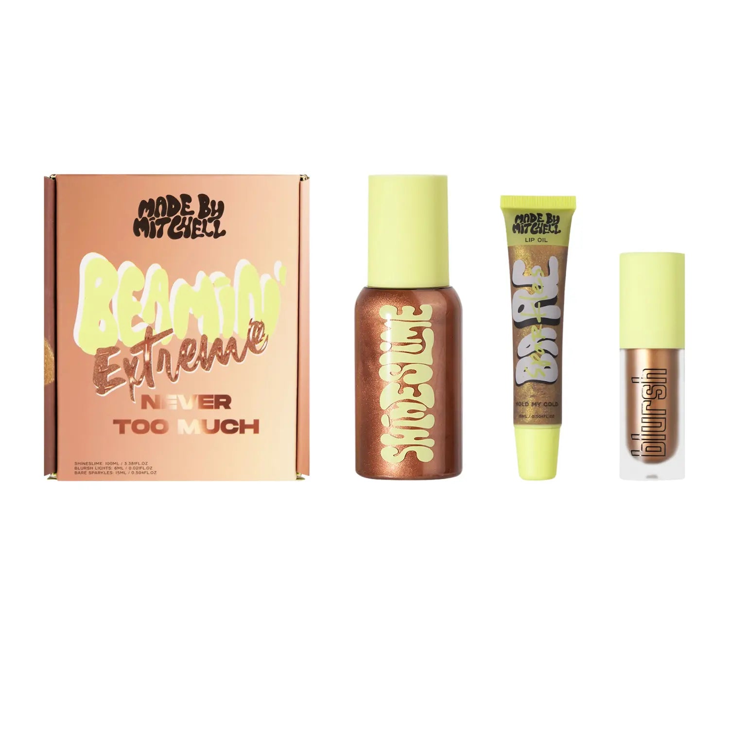 De Made By Mitchell Beamin Extreme Never Too Much Bundle is alles wat je nodig hebt om jezelf van top tot teen in glow te hullen. Deze dreamy trio zit bomvol glans, sparkles en shine en geloof ons: hiermee steel je gegarandeerd de show. Of je nu een subtiele sparkle wilt of full-on glitter goals nastreeft, deze set laat je stralen op jouw manier. De beauty bundle is verkrijgbaar in meerdere kleuren: zo kan je perfect kiezen wat bij jou past!