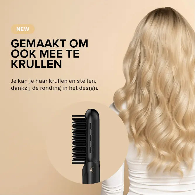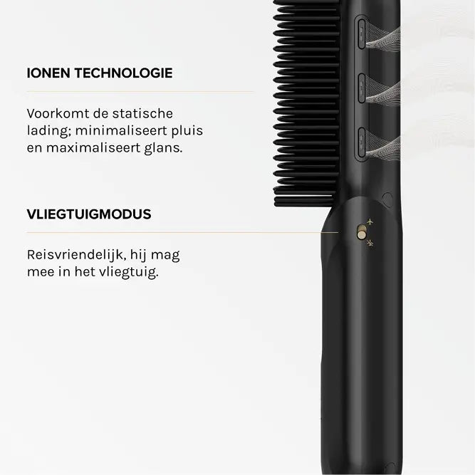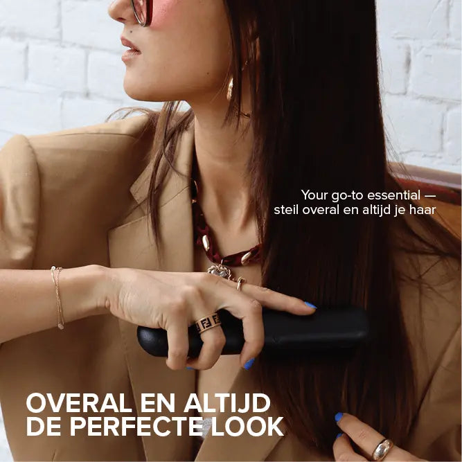 Met 3 instelbare warmtestanden (160°C, 180°C en 200°C) is de Touch Up geschikt voor elk haartype. De keramisch gecoate borstelharen verdelen de warmte gelijkmatig, terwijl ionentechnologie pluis tegengaat en je haar een zijdezachte glans geeft. Dankzij het afgeronde ontwerp kun je niet alleen steilen, maar ook krullen of volume creëren. En met een batterijduur van minimaal 40 minuten én de optie om ‘m als powerbank te gebruiken, heb je écht alles bij de hand. Hello hair & phone goals in één!