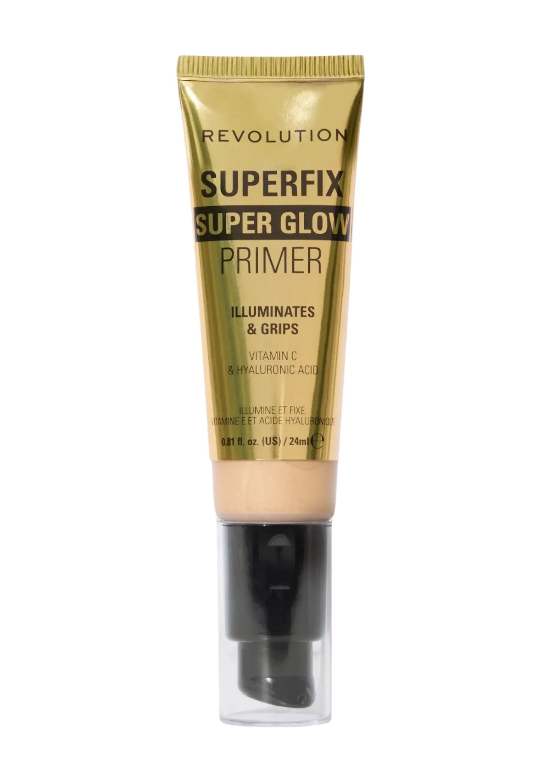 De Makeup Revolution Superfix Grip Superglow Primer Gold is jouw nieuwe go-to voor een flawless glow die de hele dag blijft zitten. Deze frisse gelprimer combineert de ultieme hydratatie met een sterke grip voor je make-up, zodat je look echt locked-in is. En die glow? Die komt van de subtiele gouden finish die je huid laat stralen zonder te glimmen.