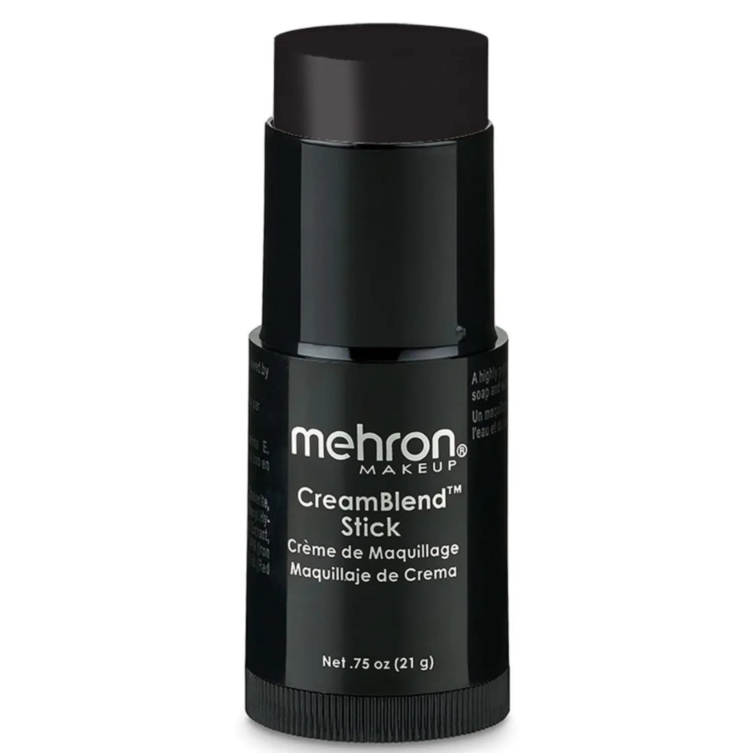 De Mehron Makeup CreamBlend Stick Black is een iconische, professioneel geliefde cream make-up in stickvorm. Deze supergepigmenteerde formule biedt volledige dekking en is speciaal ontwikkeld om bestand te zijn tegen extreme omstandigheden, zoals felle podiummake-up of lange draaidagen. Of je nu op het podium staat, een cosplay personage tot leven brengt of een creatieve Halloween-look neerzet: deze stick doet het allemaal.