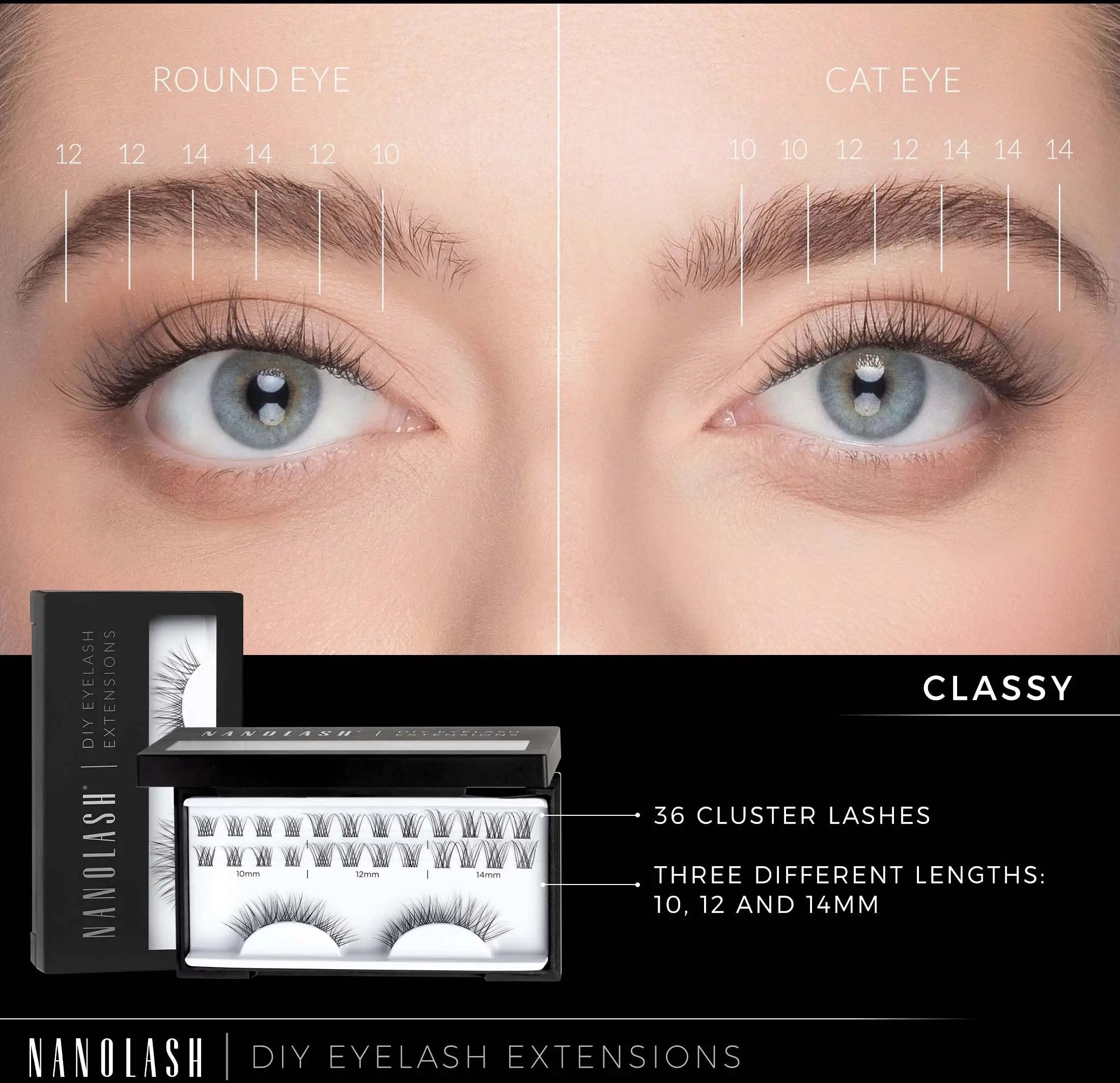 In één verpakking vind je 36 clusters in verschillende lengtes, waarmee je 4 tot 6 keer een volledige set aanbrengt. De wimpers zijn superlicht, comfortabel en breng je onzichtbaar aan onder je natuurlijke wimpers. Het resultaat? Een zachte, gedefinieerde lash line die tot wel 7 dagen blijft zitten. Combineer met de Nanolash bonder, sealer en applicator voor een flawless finish. Classy is ideaal voor dagelijks gebruik én voor speciale momenten waarop je wilt stralen.