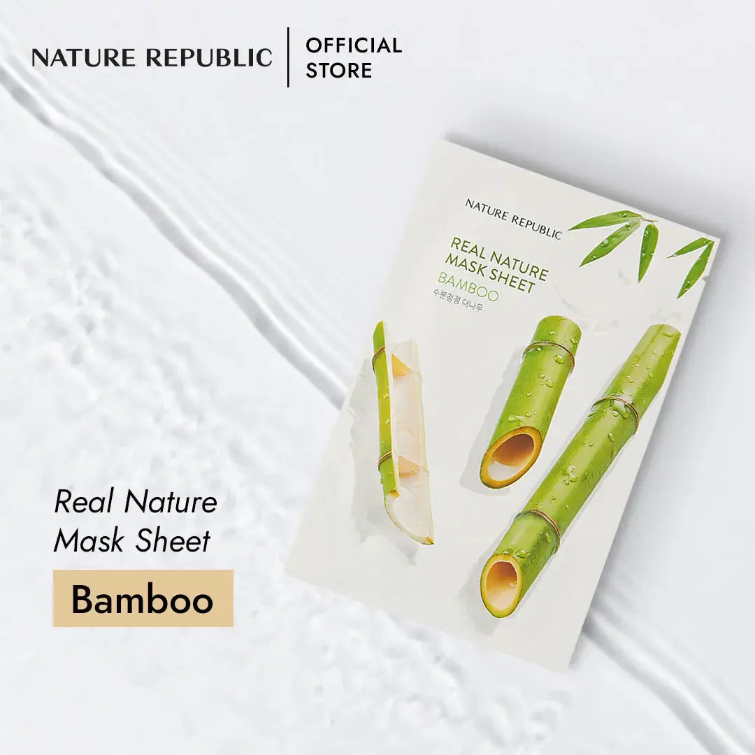 Het Nature Republic Real Nature Sheet Mask Bamboo is een verfrissend sheet mask dat je huid helpt weer in balans te komen. Verrijkt met Bamboo extract ondersteunt dit masker de natuurlijke vochtbalans van de huid en zorgt het voor een gehydrateerd, fris en comfortabel huidgevoel.