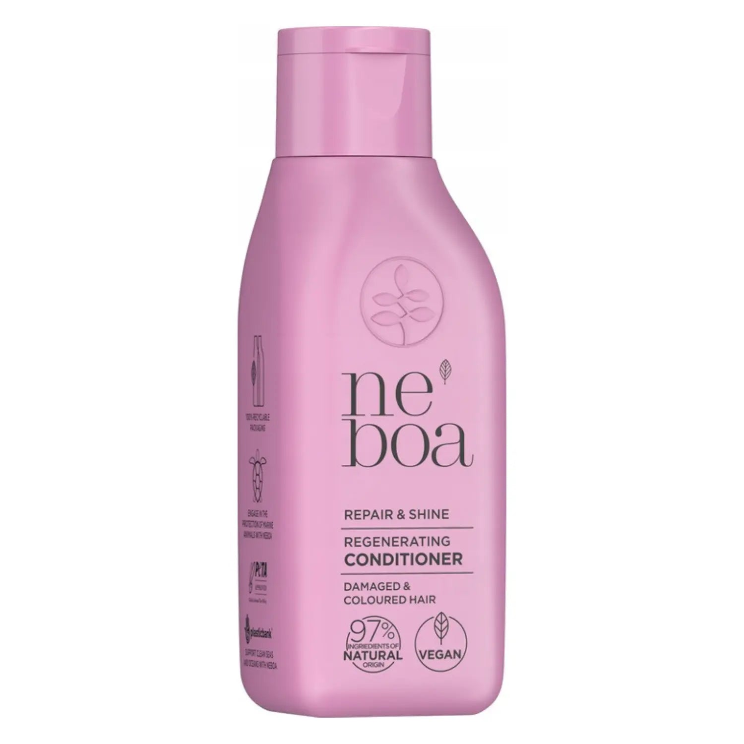 De Neboa Repair & Shine Regenerating Conditioner Mini is een natuurlijke herstellende conditioner speciaal ontwikkeld voor beschadigd en gekleurd haar. Deze verzorgende formule helpt het haar te versterken en te herstellen over de volledige lengte, zodat je lokken er weer gezond, soepel en stralend uitzien.