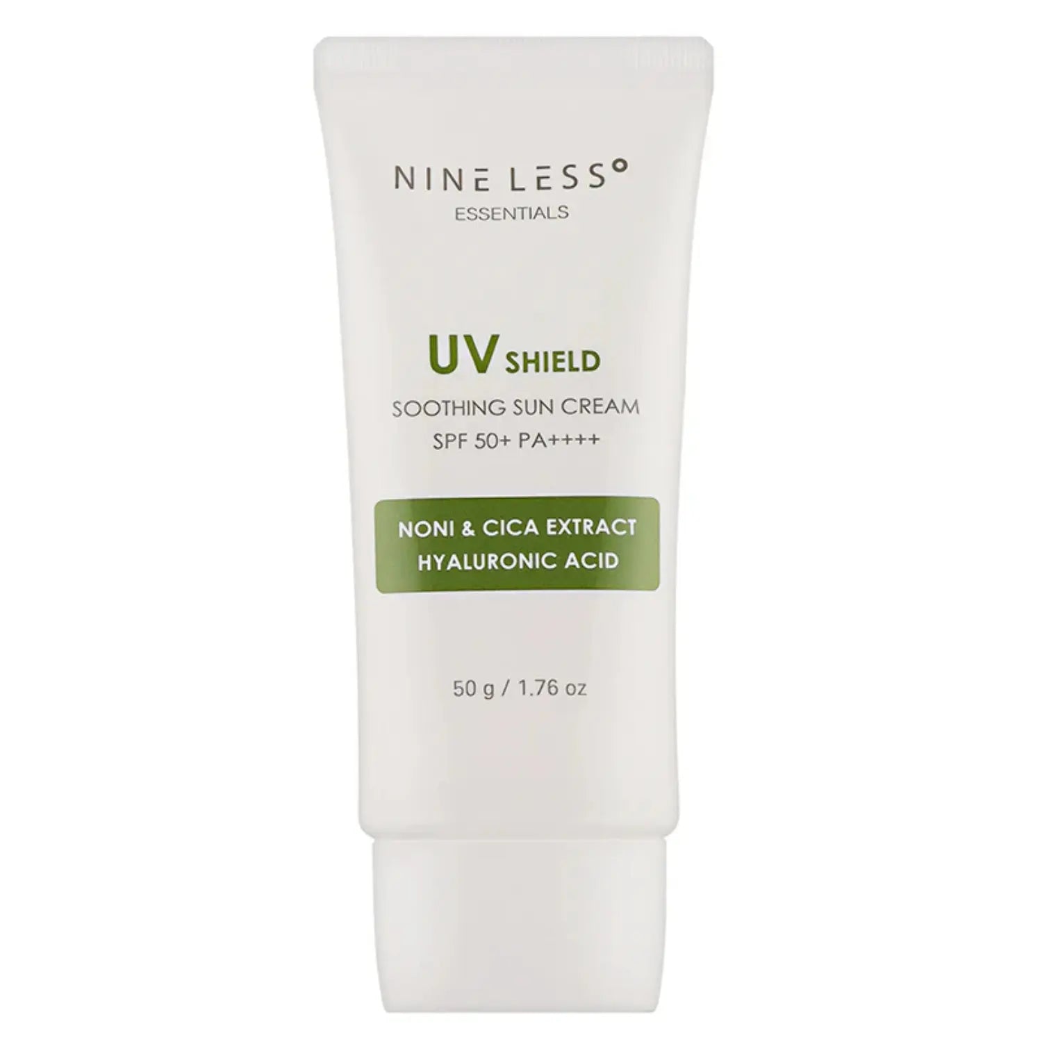De Nine Less Essentials UV Shield Soothing Sun Cream SPF 50+ PA++++ is jouw zonbescherming zonder gedoe. Deze lichte, fluweelzachte zonnebrandcrème beschermt je huid krachtig tegen schadelijke UVA- en UVB-stralen, terwijl huidkalmerende ingrediënten roodheid en irritatie helpen verminderen. En het mooiste? Geen witte waas, geen plakkerig gevoel, alleen een smooth, matte finish die perfect onder make-up past.