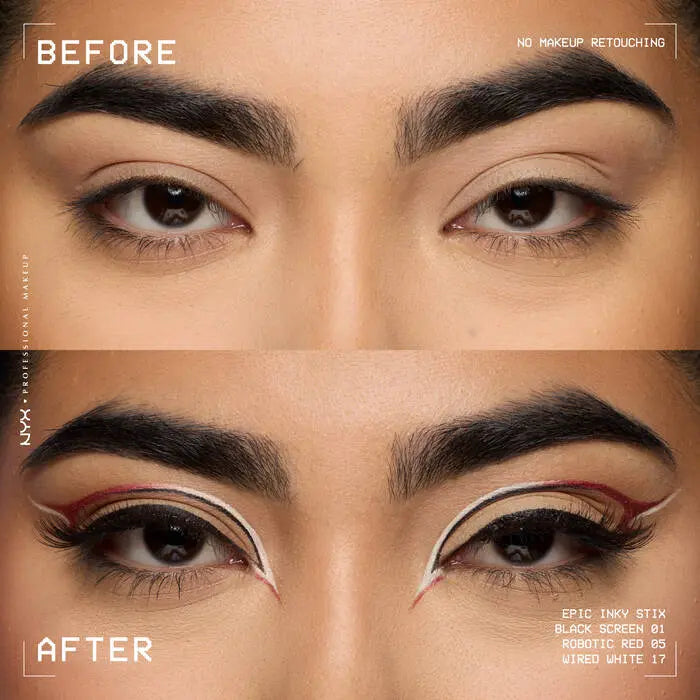 De NYX Professional Makeup Epic Inky Stix Eyeliner Black Screen is jouw ultieme zwarte eyeliner voor een krachtige, matzwarte look die de hele dag blijft zitten. Deze creamy gel eyeliner glijdt moeiteloos over de huid en levert intense pigmentatie in slechts één beweging: zonder trekken, vlekken of uitlopen.