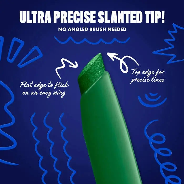 De crèmige geltextuur glijdt moeiteloos over de huid zonder te trekken of te vlekken, en de schuine precisietip maakt het super makkelijk om dunne lijnen, wings of grafische details te zetten: zónder kwast. Of je nu gaat voor een subtiele groene touch of een full-on bold liner look, Electric Emerald zorgt voor impact met een metallic finish die je ogen laat poppen!