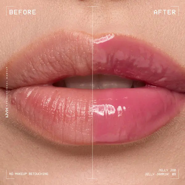 De NYX Professional Makeup Jelly Job Lipgloss Jelly Jammin geeft je lippen die iconische jelly-shine waar je meteen blij van wordt. Met één swipe glijdt de spatula-applicator soepel over je lippen en brengt een lichte, jelly-zachte textuur aan die zorgt voor juicy volume en een glossy finish die iedereen laat kijken. Deze gloss voelt supercomfortabel aan en maakt van jouw pout een echte eyecatcher.