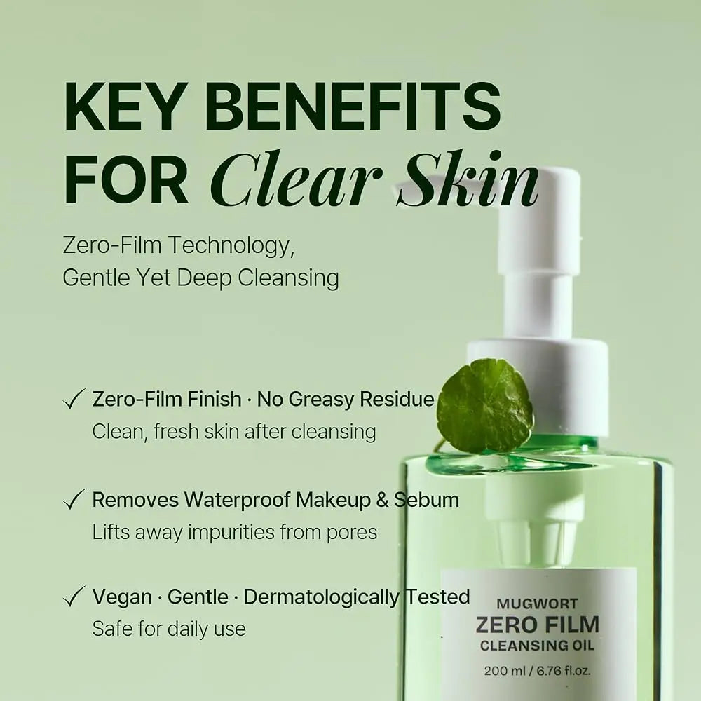 De Orien Mugwort Zero Film Cleansing Oil is dé must-have reiniger als je houdt van een schone huid zonder trekkerig gevoel. Deze vegan cleansing oil zit bomvol kalmerende ingrediënten zoals Mugwort en Centella Asiatica Extract, die irritaties verzachten en je huidbarrière versterken.