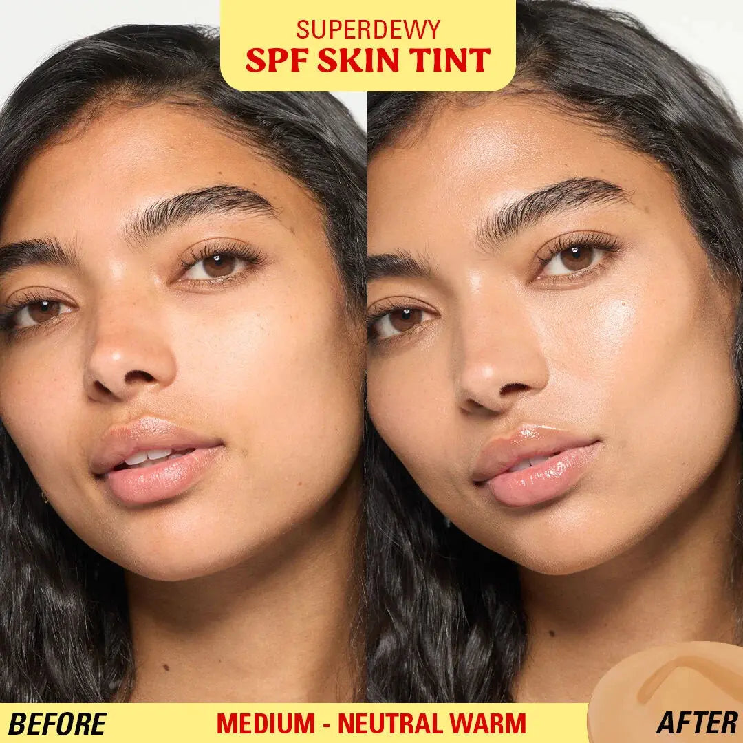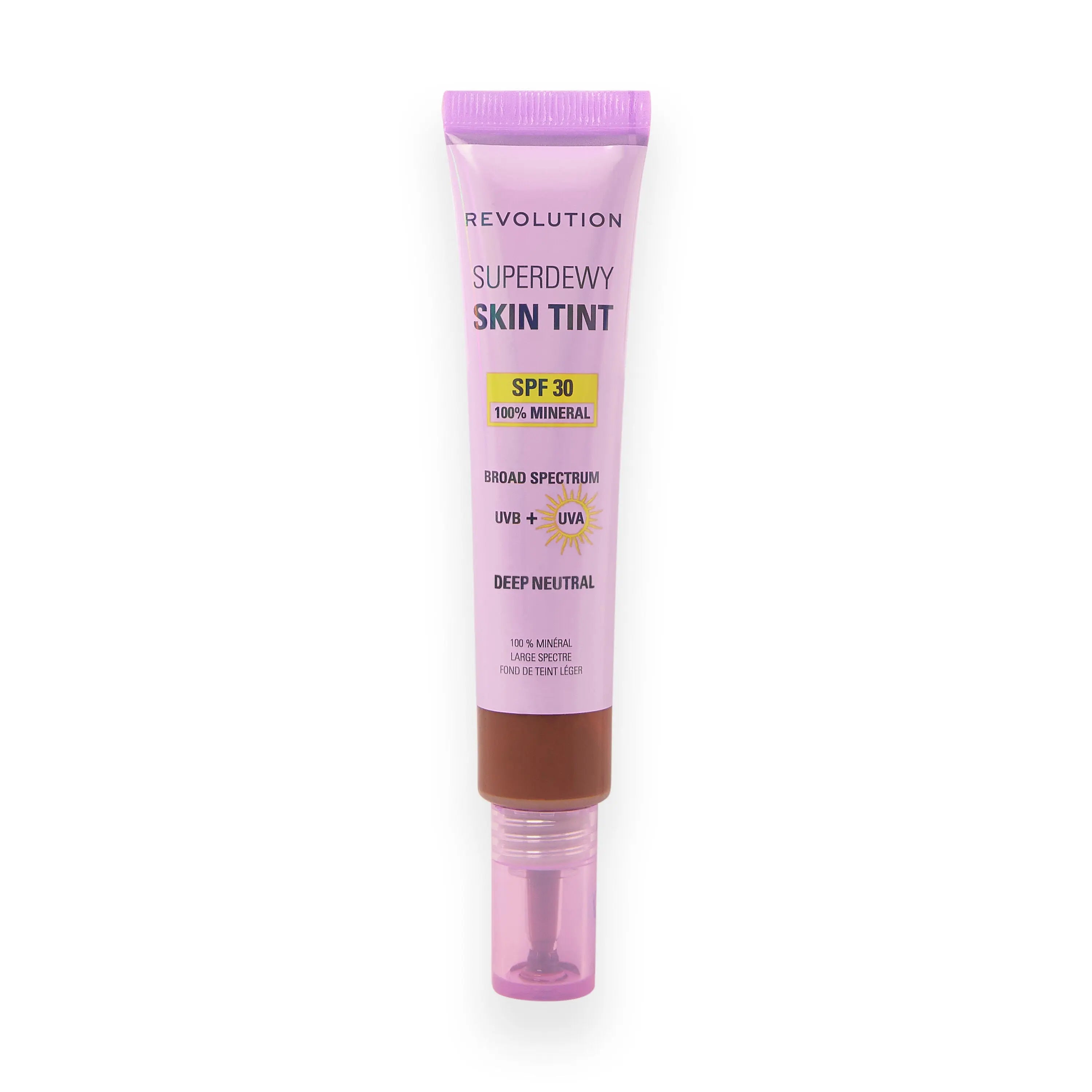 De Revolution Superdewy SPF30 Skin Tint is de perfecte match voor iedereen die op zoek is naar een stralende teint én optimale bescherming. Deze lichtgewicht skin tint is de allereerste minerale SPF30 van Revolution Beauty en is geschikt voor alle huidtypen, maar in het bijzonder voor de gevoelige en onzuivere huid. De formule verstopt je poriën niet en geeft je huid een prachtige, natuurlijke glow.