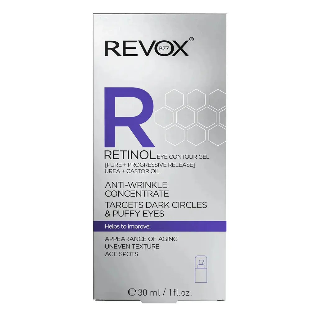 De Revox Retinol Eye Gel Anti Wrinkle Concentrate is een geconcentreerde ooggel verrijkt met vitamine A, speciaal ontwikkeld om tekenen van veroudering in de tere huid rondom de ogen te verminderen. Deze formule met retinol en urea werkt effectief op fijne lijntjes, rimpels en pigment gerelateerde donkere kringen.
