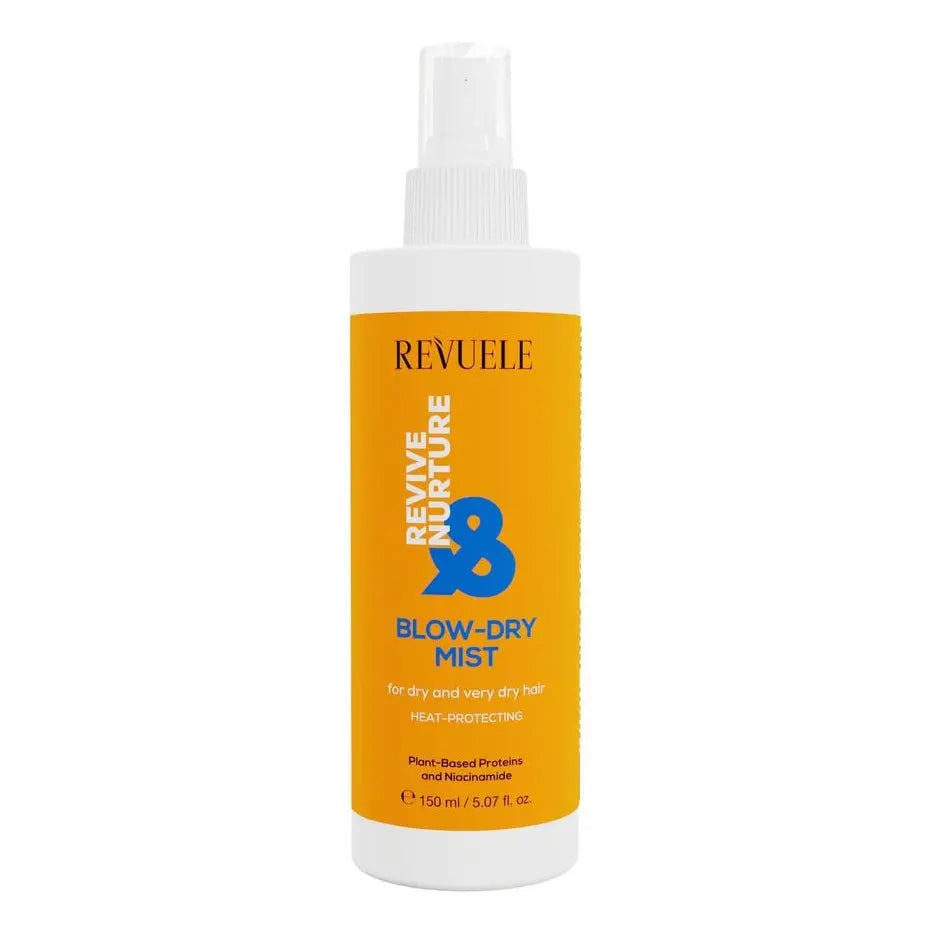 De Revuele Blow Dry Mist Revive & Nurture maakt föhnen makkelijker terwijl je haar beschermd en verzorgd wordt. Deze lichte spray helpt je haar te beschermen tegen hitte en geeft het een mooie glans en zijdezacht gevoel.