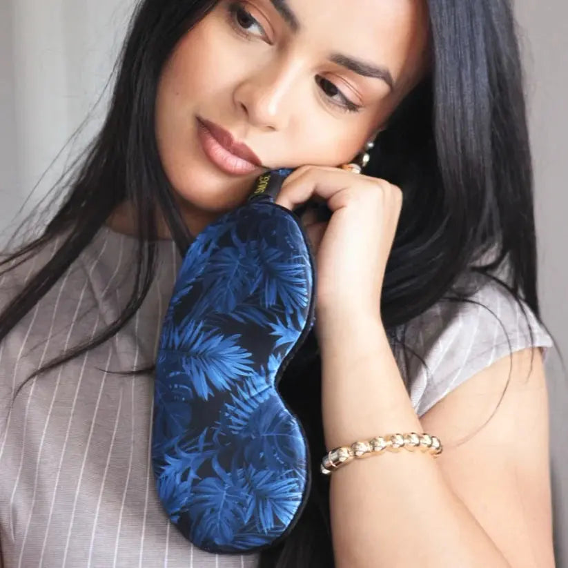 Het Smug Cloud Padded Satin Sleep Mask Navy Palm laat je wegdromen naar tropische oorden: zónder je bed te verlaten. Met een diepe navy achtergrond en subtiele palmprint is dit slaapmasker niet alleen een feast voor je ogen, maar ook een must voor je beauty sleep.