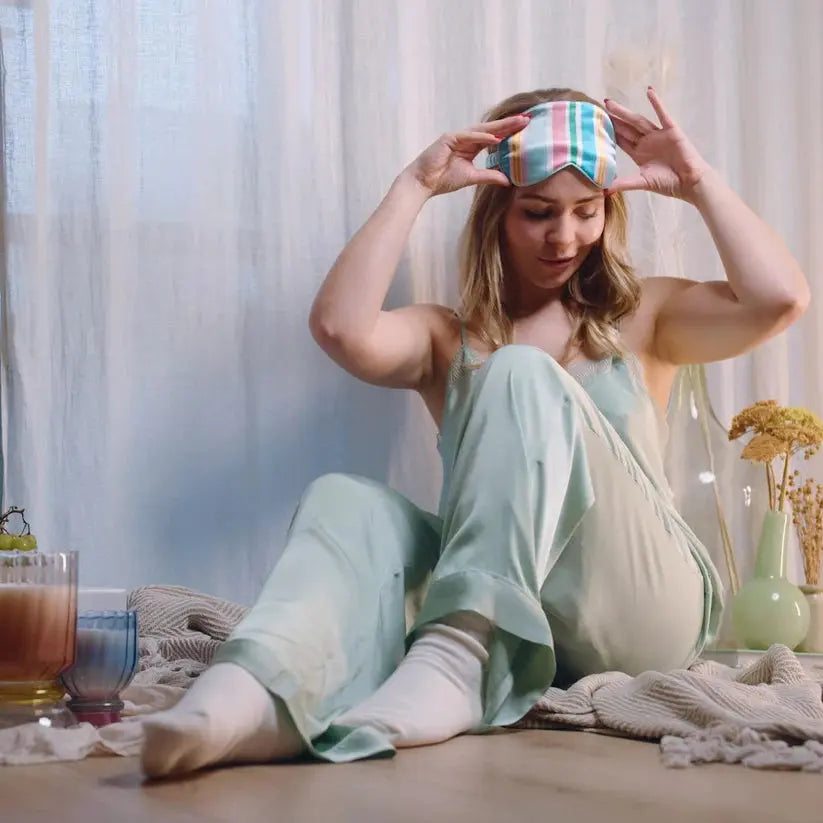 Satijn helpt de huid gehydrateerd te houden, vermindert fijne lijntjes en voorkomt frictie en knikken in je haar. Dankzij de elastische band blijft het masker comfortabel zitten, of je nu onderweg bent, een dutje doet of thuis helemaal tot rust komt. Bold look, zachte feel: wat wil je nog meer?