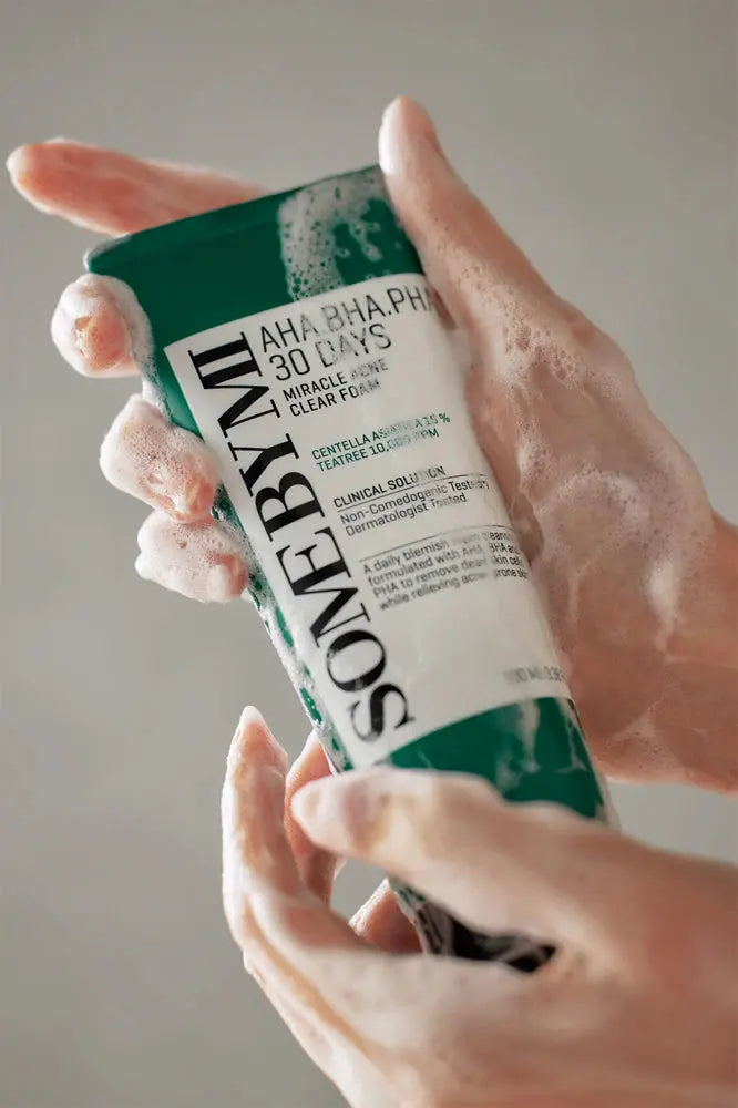 Het Some By Mi AHA BHA PHA 30 Days Miracle Acne Clear Foam is jouw redder in nood als je last hebt van een onrustige, vette of acne-gevoelige huid. Deze Koreaanse topper reinigt je huid intens, zonder ‘m uit te drogen. De zachte maar krachtige schuimformule barst van de werkzame ingrediënten zoals salicylic acid, tea tree oil en 80% centella asiatica extract. Say bye to breakouts en hello to een rustige, frisse glow!