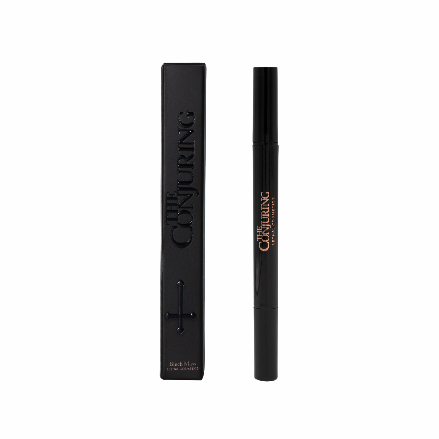 De Lethal Cosmetics The Conjuring Liquid Liner Black Mass is allesbehalve een basic eyeliner het is een mysterieus make-up statement met een duistere twist. Deze double-ended eyeliner pen combineert een superprecieze zwarte brush tip met een cross stamp aan de andere kant, zodat jij moeiteloos kunt switchen tussen strak en creatief.