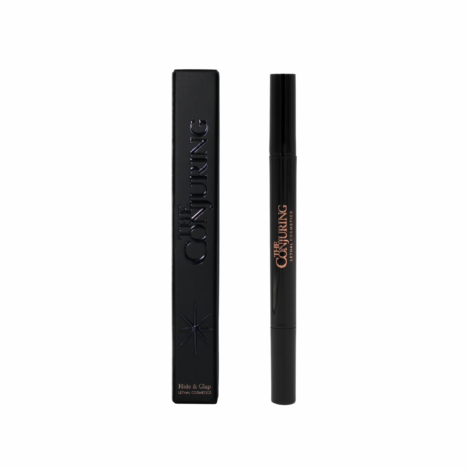 De Lethal Cosmetics The Conjuring Liquid Liner Hide & Clap is dé eyeliner voor wie houdt van subtiele mystiek met een speelse twist. Deze dubbelzijdige eyeliner pen komt in een warme, diepe bruine tint en heeft aan de ene kant een precieze brush tip, en aan de andere kant een star stamp voor die extra dosis creativiteit.
