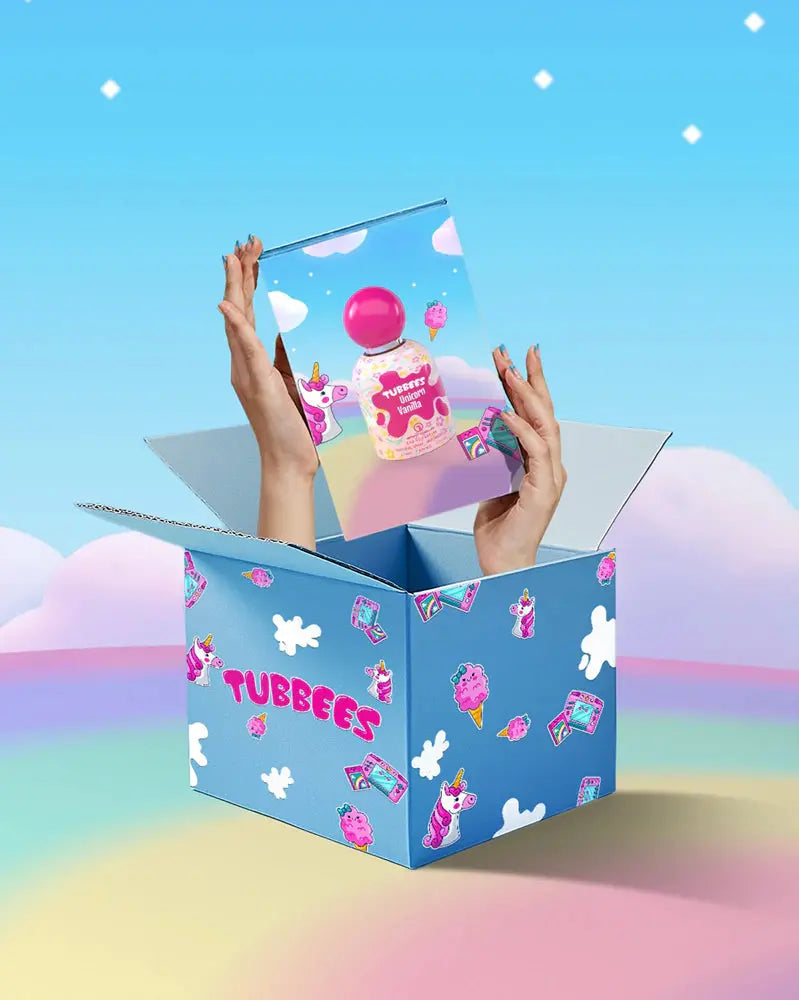 De Tubbees Unicorn Vanilla Eau De Parfum geïnspireerd op Unicorn Fruit is pure magie in een flesje. Deze zoete, dromerige geur neemt je mee op een sprookjesachtige reis vol zachte wolken van vanille, fruitige vrolijkheid en een vleugje bloemige fantasie. Het is alsof je elke dag een beetje glitter op je huid draagt: speels, vrolijk en helemaal jij.