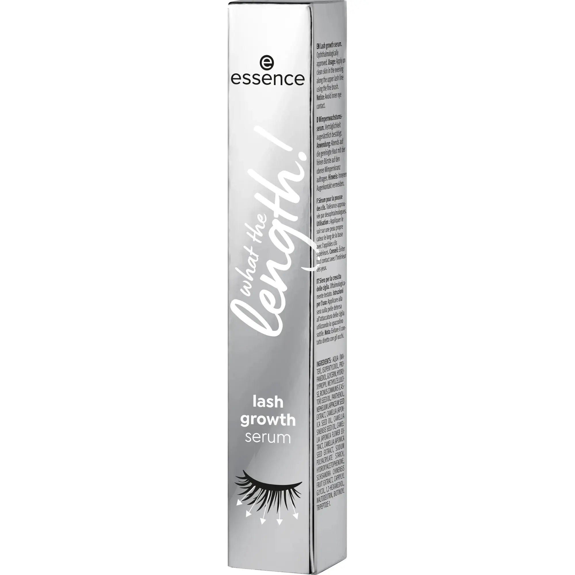 De Essence What The Length! Lash Growth Serum is jouw geheime wapen voor langere en vollere wimpers. Dit transparante serum is verrijkt met Widelash™ en helpt bij dagelijks gebruik om je wimpers zichtbaar te versterken. Ideaal als je droomt van natuurlijke, mooie wimpers zonder make-up.