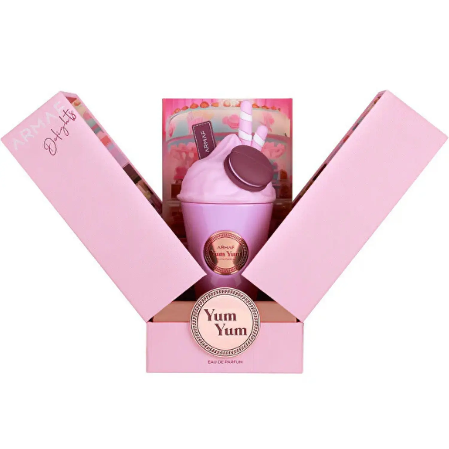 Armaf Delights Yum Yum Eau De Parfum is een onweerstaanbaar zoete en vrolijke geur die je meteen doet denken aan romige milkshakes op een zonnig terras. Deze parfum uit de Delights collectie is speels, vrouwelijk en onweerstaanbaar verslavend: perfect voor iedereen die houdt van fruitige geuren met een zachte, gourmand twist.